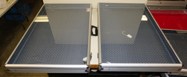 each 22"x34" about 3" deep, clean and nice lockable cases, great for displaying your collection or for dealers for shows; no shipping, 2x the money