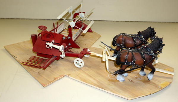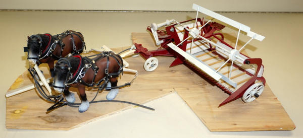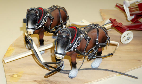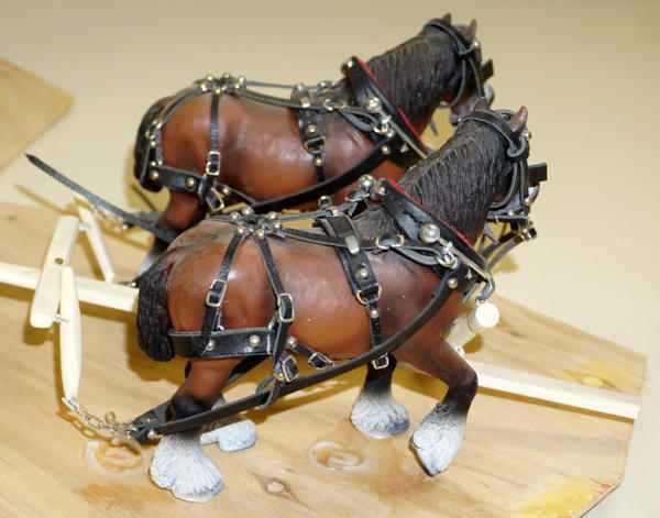 Scratch built form metal, nice set of Clydesdales included, mounted to a piece of wood to display, a little dusty, but still nice