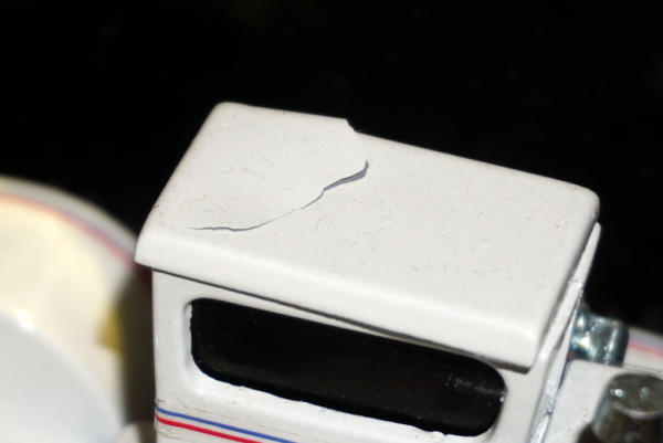 has paint flaking off the cab and one stack is broken off, w/ original box