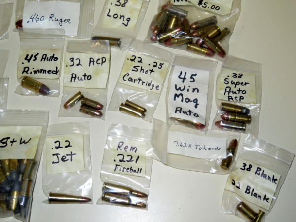 includes .44 Mag, .38 Spl., .50cal, .454 Casull, .380 Auto and more; over 100 rounds; sell for one money