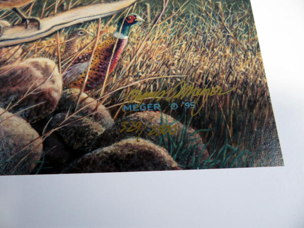28.5"x21"; just the print, no frame or matting; very nice; pheasant scene w/JD tractor in background & dairy cattle; signed & no.329/2500