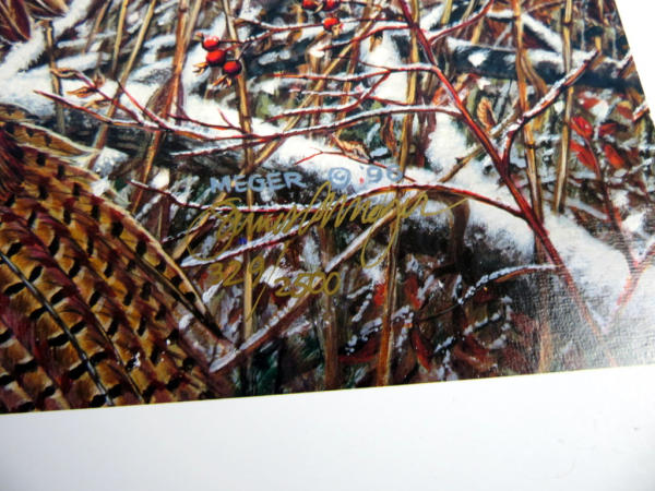 28.5"x21"; just the print; no frame or matting; very nice; pheasant scene w/JD tractor in background & dairy cattle; signed & no.329/2500