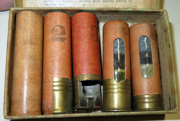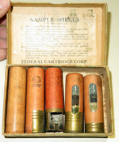 shows the 5-step process how the shells are made; neat salesman sample set!