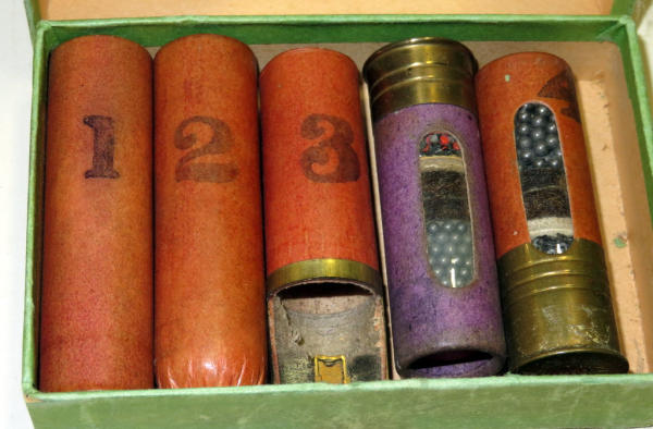 shows the 5-step process how the shells are made; neat salesman sample set!