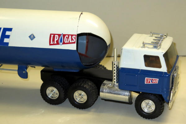 looks OK from one side, but the front of the plastic trailer is completely broken out, going to need some TLC to make it back,