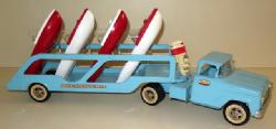 very scarce toy, original paint is about 85% or better, Boats are all new replacements, 2 engines are original, but one has damage to the mounting, overall a good example of a scarce toy