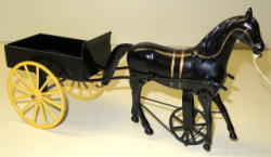 Cart & Driver are original paint, driver has a lot of paint loss, but cart is pretty good, Horse appears to be an older repaint, 15.5" long