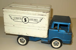 very nice and clean original truck, near mint condition;, box is missing an outside flap and has quite abit of general wear, very good looking truck, 27" long