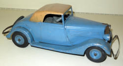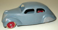 older toy, 10" long, both rear fenders have a piece missing out of the corners