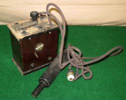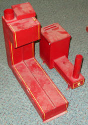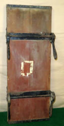Metal with leather, folds up to carrying size, believe this was to take along in an automobile