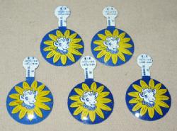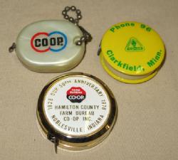 From an insurance company, 2.5" diameter, has the keys, celluloid on back side has a crack, overall a neat bank