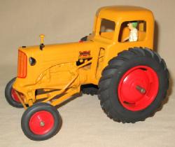 1/12th Scale, old toy with 3pt hitch, paint is 95%, does have a broken steering wheel which is common for this toy, box is nice and square, just has some dust staining and general shelf wear, hard to find.