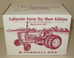 3pt, quick hitch, all levers, 2-bulb & 2 Flashers, front weights, Turbo II, Air Cleaner, Chrome Beveled pipe, Chuckie's 30" rear rubber and front rubber, new style steps, rear weights, Beautiful AC Tractor; 1st one produced by the LeMars Toy Store.