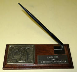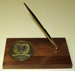 wood base is 9" long, NIB, very nice