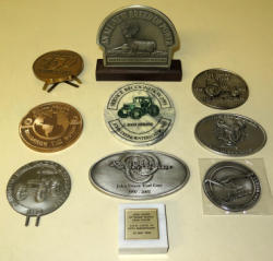 given to employees as a gift, has a spinning name plate, 6.5" tall, modern logo
