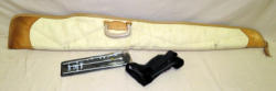 20" barrel; entire gun shows some field wear; scope is old & rough shape; does have a crack in the stock by the trigger & a crack in the trigger guard; No SN#