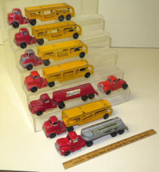 5-window red/blue has been repainted, others look to be original, largest cars are 4" long, 3x the money