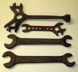 10.5" long, has 11/16" and 1 1/16" ends, hard to find with the "M-H-F" logo, only used a year or two