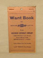 Looks like a receipt book, but each page is a postcard to order parts, has light wear, neat piece