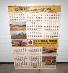 Great color graphics of IH Construction equipment at work, has top and bottom metal bands, measures 28"x42", has a few small tack holes, shrink wrapped to a board to protect
