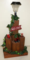 highly polished, 6.5" tall, large red jewel on the side, nice piece, main lens is cracked