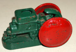 average restoration, has some repairs, missing 1/2 the smoke stack, 8" long