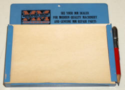 4"x3", looks like a book, has the early MM logon on the outside, some general wear, but another piece we have never seen before