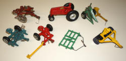 Tractor is nice original, no fenders variation and appears to be near mint; Spreader is good, but missing the top bar like most are, sells as a set for one money
