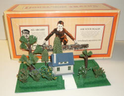Very nice set, similar to a Marx Set, maybe a hair smaller in size, all clean and nice, all to go; includes a reproduction of the original sales brochure