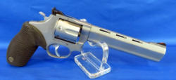 4-1/8" Stainless Barrel; rubber Pachmyr grips; front fiber optic sight; 5-shot swing out cylinder; been fired but like new condition; factory hard case; SN#576-74057