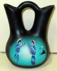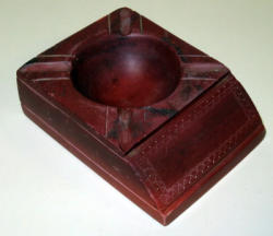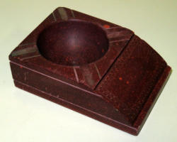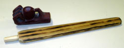 very unique piece; 5" long; unsigned; has lid for bowl; neat piece