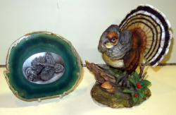 both look good; grouse is signed on bottom Tom Taber; Duck is Lane Chair Co. - Spring Lake, NJ; grouse is 11" tall; sell for one money