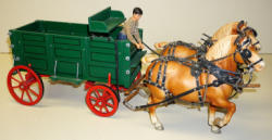 Breyer size, full leather harness, Wagon bed is all wood, running gear is all steel w/ JD rubber tired gear, very nice set