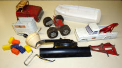 1960's cab w/ 1950's trailer, both heavy play wear, good custom project, all to go