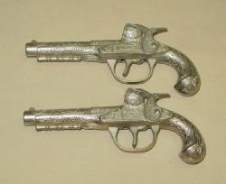 Guns don't work, one has cracked grips, holster is fairly fancy for a cap gun holster