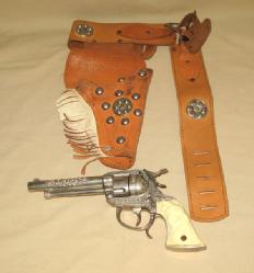 neat gun that makes a ricochet sound when you pull the trigger, works good, large size, nice old holster too