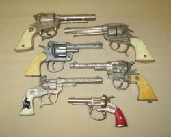 includes Rodeo, Kit Carson, Champion, Red Ranger, Hero Cast Iron, & Eagle, some with broken hammers, some don't work, 6x the money