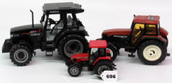 Case IH 5150 Bruder 1/16 Plastic, Case IH Cx100 1/32, and a Nederland 1997 Dornten LCN w/a broken rear wheel and cab top is loose