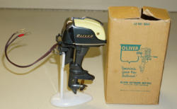 Super clean and nice original motor, original plastic two stand is also nice, did not test, missing one of the cups on the mount, otherwise near mint original; original box is missing the main top flap, but otherwise square; has some writing on one side; nice and scarce Oliver toy
