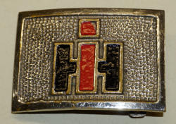 just 2" long, these were issued as part of a uniform, often considered the first buckle made by IH, some wear to the finish, hard to find