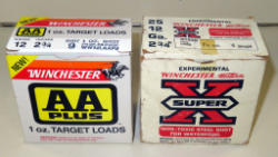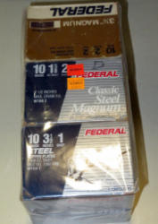 10ga. Are all 3.5" and include (18) BB, (1) Steel BBB, (2) Steel F, (3) Lead 4-shot, (1) Paper Lead; 12ga. Super-X Mag. 2.75" 2-shot box is full and near mint; Federal 2.75" Super Slug HP; 55 rounds total; sell for one money