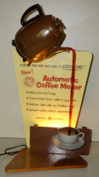 26" tall, wood & plastic, lights up, supposed to look like coffee pouring, but the motion was not working, overall still really clean and nice; neat piece