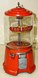 classic machine, has some touch ups in the porcelain, but not bad, 20" tall, mounted to a wood stand for display, neat piece