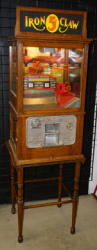 Super sharp and professional restoration on an original machine, stands about 5' tall as shown, wood case, mechanism looks to be all restored, comes with a box full of vintage penny toys and misc. to display inside; no shipping, super sharp and great piece for the game room!