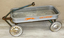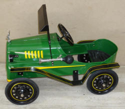 26" long, original paint is about 70%, has original canvas cover with the caged back similar to the next lot, new decal on the grill