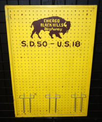 Wow, great find, 30"x36", from the Black Hills area, old original paint has heavy wear and some of the corners are cut, but still has a great "look" to the sign, 1 of a kind piece of South Dakota transportation history