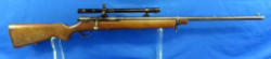 22" BBL; smooth action; hard caliber to find in this model; wood stock has some finish loss; leather sling; missing rear sight; SN#14689146