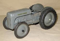 all metal rims variation, has 3pt hitch, missing steering wheel and seat is loose, otherwise good original, paint is 85% or better, hard to find vintage toy