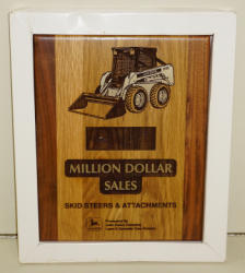 Laser etched wood, 10"x8", NIB, box has some wear, plaque is missing, but no name tag included, shows a model 7775 Skid Loader, another piece we have never sold