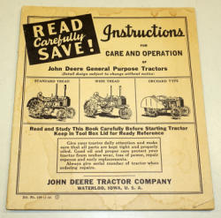 pocket size, 32 pages, some discoloration on the cover, otherwise very nice for the age, Pre-John Deere merger